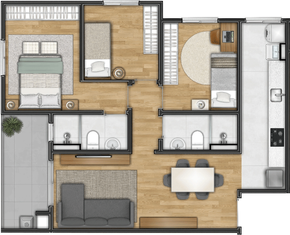 Apartamentos 2 e 3 dormitórios com suíte, além de unidades Garden em uma localização estratégica, na Av. Joaquim C. Sena esquina com Av. Ildo Meneghetti. Área comum bem aproveitada, com Piscina, Rooftop com Espaço Gourmet, Lavanderia, Coworking e Bar, além de soluções sustentáveis.